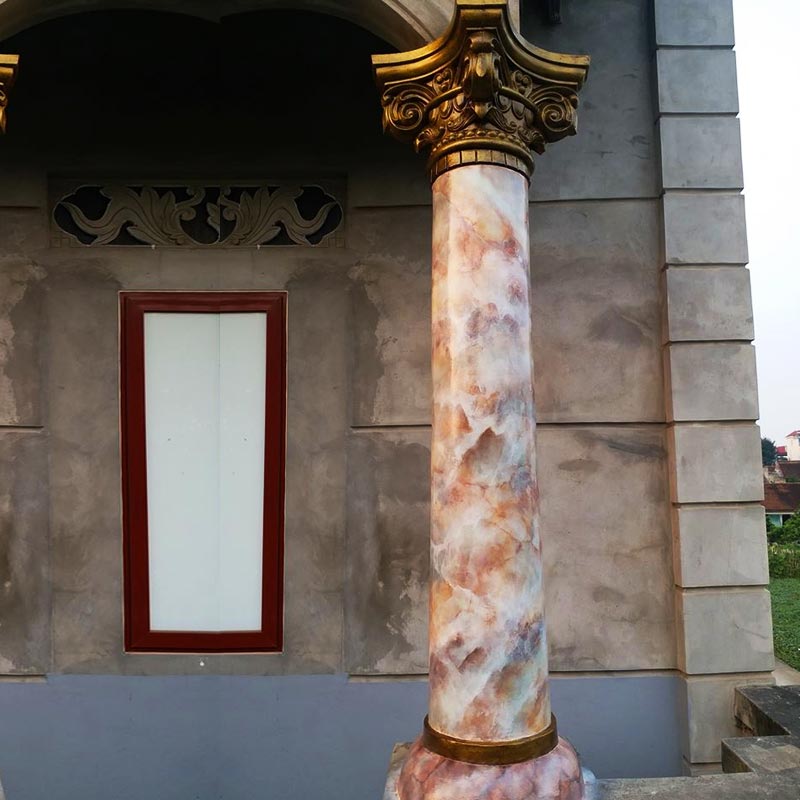 Về thẩm mỹ, sơn giả đẹp như đá cẩm thạch tự nhiên mà chúng ta đã biết. Thậm chí có phần bóng và mới hơn. Về kỹ thuật thì độ chắc chắn của hai loại sơn là tương đương nhau. Tuy nhiên cột giả đá có trọng tải nhỏ hơn, không gây áp lực cho công trình. Đồng thời có giá thành thấp hơn rất nhiều so với màu đá tự nhiên.